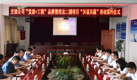 臨近“七一”,在杭州灣大橋北接線(二期)項目六標項目經理部,由交建公司黨支部牽頭,聯合嘉通高速聯合黨總支、高速交警嘉興支隊黨總支、高速路政黨總支,共同舉行了“黨建+工程”品牌暨灣北二期項目“共謀共贏”活動簽約儀式。從共學共建到共管共享再到共謀共贏,灣北二期項目工程黨建不斷深化,黨建品牌與工程品牌交相輝映。